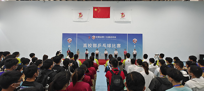 蒋德勤在致辞中代表kaiyun开云官方网站_kaiyun开云(中国)股份有限公司,党政领导及18000多名师生员工向莅临我校的领导、来宾及全体运动员、教练员、裁判员表示诚挚的欢迎;向省运会组委会、省委教育工委省教育厅、省体育局、滁州市委市政府和凤阳县委县政府对于本届赛事的大力支持,表示衷心的感谢;向志愿服务人员和关心支持本届赛事的社会各界人士,致以崇高敬意;他介绍了我校的改革发展和办学成果情况,他表示,学校在省运会组委会的领导下,把协办好第十五届省运会高校部乒乓球赛事作为学校的重点工作和民生工程,齐心协力营造环境氛围,精致强化服务保障,努力奉献一届保障有力、充满活力、精彩纷呈的高校部乒乓球赛事。希望各位领导和来宾对我校事业发展给予帮助和指导,共叙校际友情;希望全体参赛人员,能够展现出精湛的技能和良好的风貌,取得比赛成绩和精神文明的双丰收;希望在常态化疫情防控时期,全体参赛人员、志愿服务人员、工作人员,加强自身疫情防控,确保赛事安全。