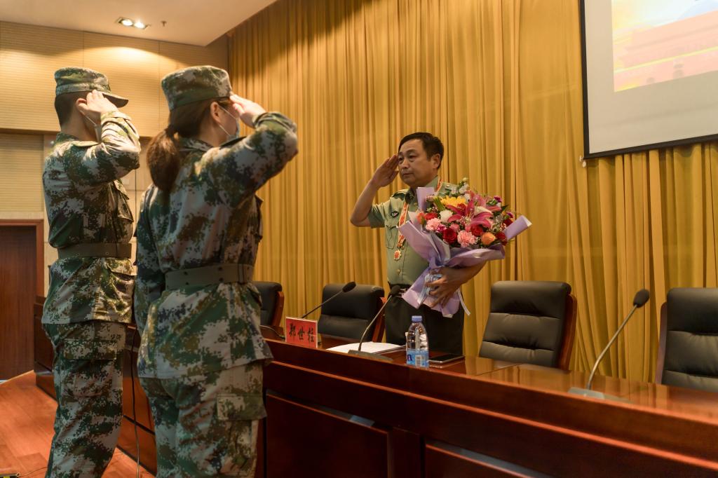 报告会上,郑世柱同志身着戎装走上讲台,全体师生肃然起立,掌声雷动,对老战士致以崇高敬意。