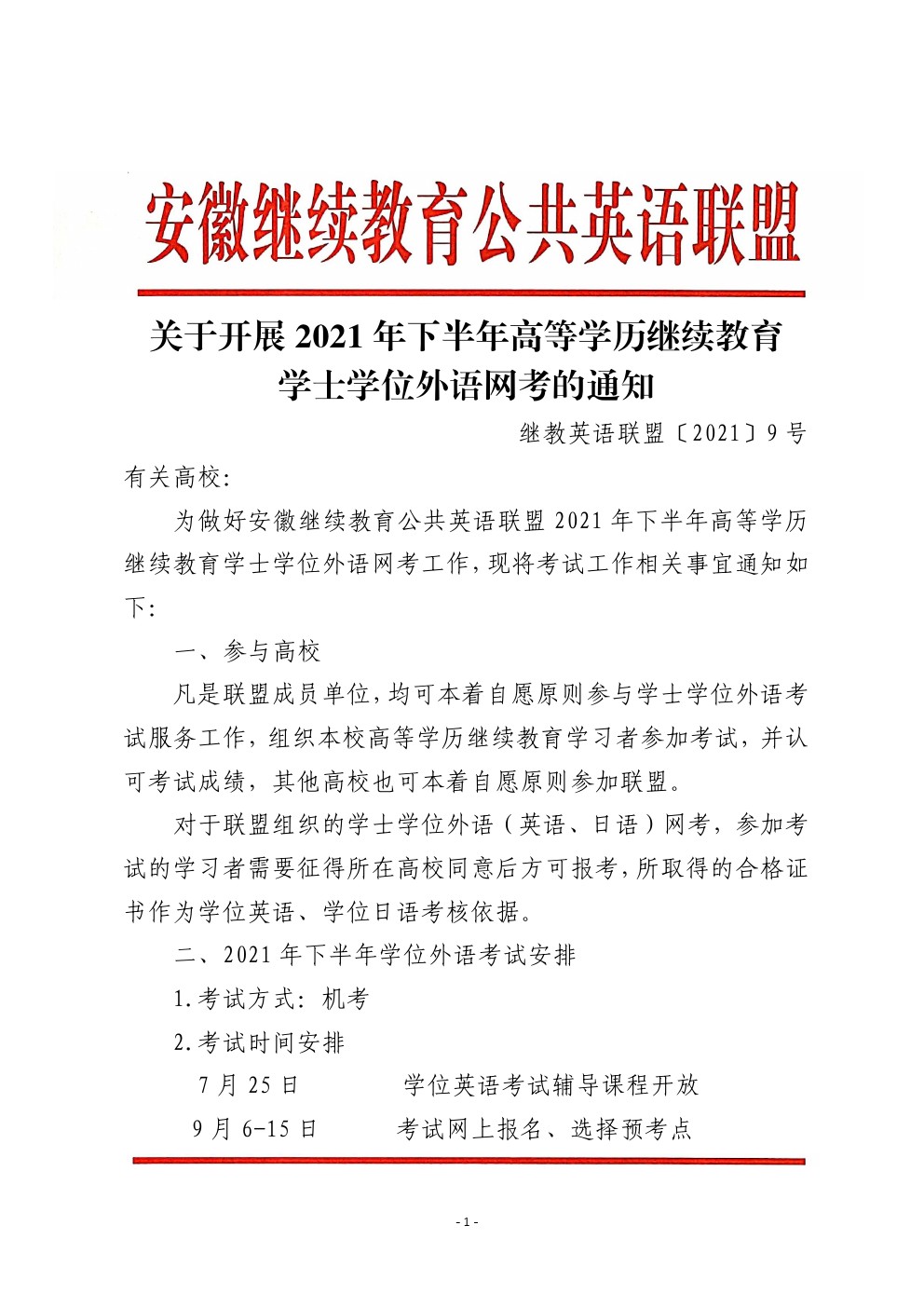 关于开展2021年下半年高等学历继续教育学士学位外语网考的通知