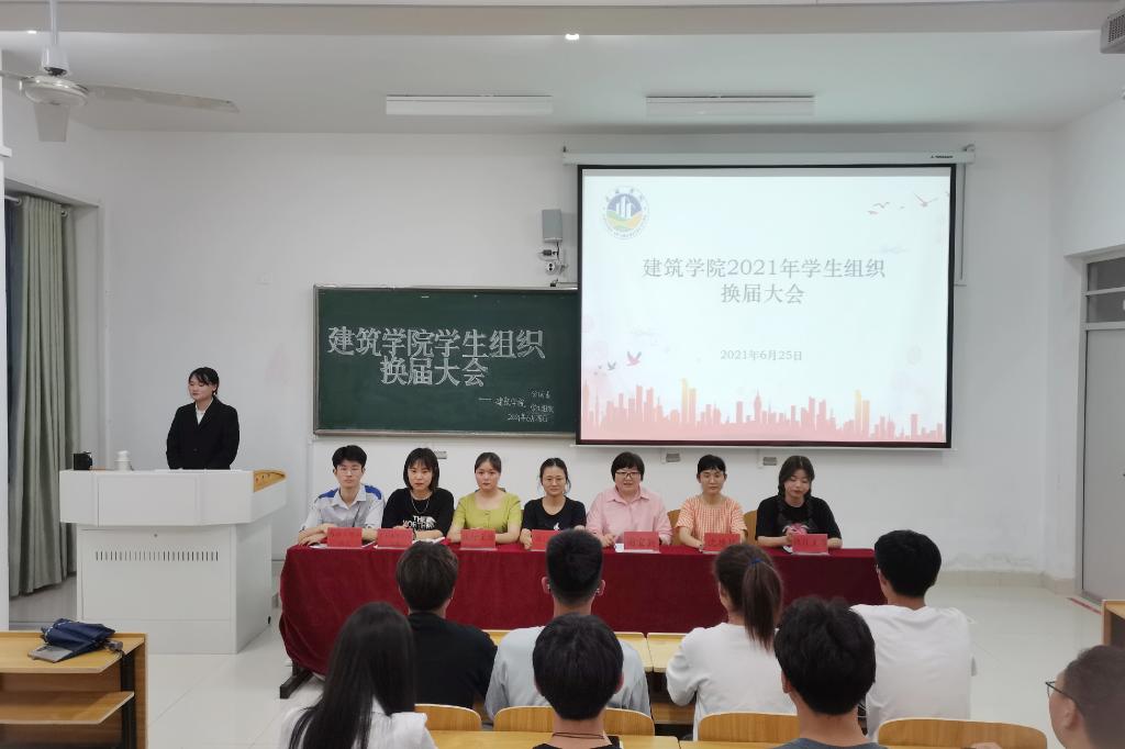 6月25日,建筑学院在致知楼B208举行2021年学生组织换届大会。建筑学院党委副书记谢宜勤、团委书记沈德艳,学生会、易班工作站、艺术体育中心全体成员参加了本次大会。