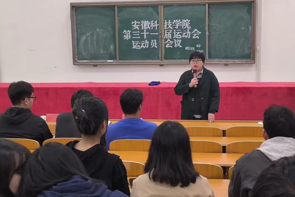 谢宜勤指出一年一度的校运动会对弘扬体育精神,丰富校园文化,增强师生身心健康,促进学生德智体美劳全面发展具有重大而深远意义,希望同学们思想上要高度重视,积极参加体育项目,展现自我,挑战自我;接着,她对参赛运动员进行了安全教育指导,要求他们规范参赛、文明参赛和安全参赛,赛出成绩,赛出风格;最后,她要求全体学生干部做好运动会各项筹备工作和运动员的服务工作,力争做好、做细、做实,并预祝在全体师生共同努力下,学院在本届校运动会再创佳绩!