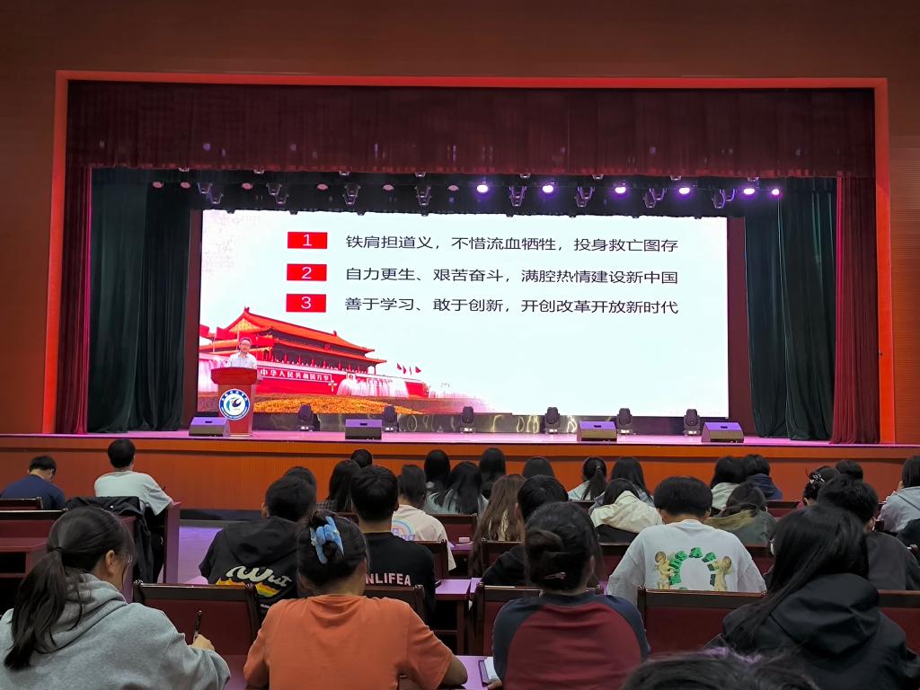 以“五史”为鉴,沥字字箴言。会上,学院正处级组织员张严政为同学们做题为“坚定理想信念,勇担时代使命”的辅导报告。报告第一部分指出,“回首往昔,无数共产党人勇挑历史重担,谱写了一部为民族独立和国家富强而不断牺牲奉献的波澜壮阔史诗”,张严政满怀深情地讲述一个个感人肺腑的党史小故事,重温峥嵘岁月、缅怀革命先烈,引起同学们的强烈共鸣。报告第二部分深入分析了前进道路上可能遇到的各种风险与挑战,当今世界远不太平、国际形势严峻复杂,国家尚未完全统一、民族复兴挑战重重,改革发展任务繁重、美好生活尚需时日,强调“面向未来,全体共产党人必须勇担民族复兴伟大使命,披荆斩棘、锐意进取,再创新的历史辉煌”。报告第三部分围绕“立足当下,新时代青年学生必须强化责任担当,勇担时代使命,练就过硬本领,报效祖国、服务人民”,向全体与会同学提出了四点要求:深入学习“五史”,坚定理想信念;聚焦主责主业,提升综合素质;自觉抵御西化分化,坚决维护国家安全;弘扬优秀传统文化,助力民族复兴伟业。