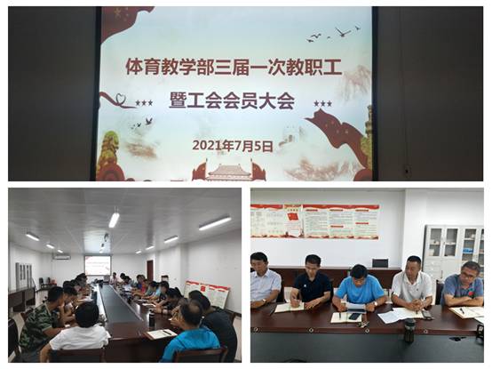 7月5日下午,体育教学部在部门会议室隆重召开三届一次教职工暨工会会员大会。体育教学部党政领导和全体教职工参加大会,会议由体育教学部党总支书记何俊如主持。