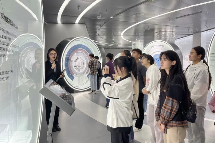 蚌埠创新馆是蚌埠市创新成果对外展示的综合性平台,布展面积近8000平方米,策展主题为“珠城之芯·闪耀世界”,设置“创之源·生万物”、“创之光·耀珠城”、“创之果·兴百业”和“创无界·致未来”四个展区,全面展示了蚌埠近年来实施的创新政策,搭建的创新平台,取得的创新成果等。全体党员在讲解员的带领下,零距离感受科技创新的魅力,进一步了解科技发展的成就。通过沉浸式观看视频、近距离参观体验等形式,身临其境地感受了科技创新的进步,领略了美好未来的发展前景。