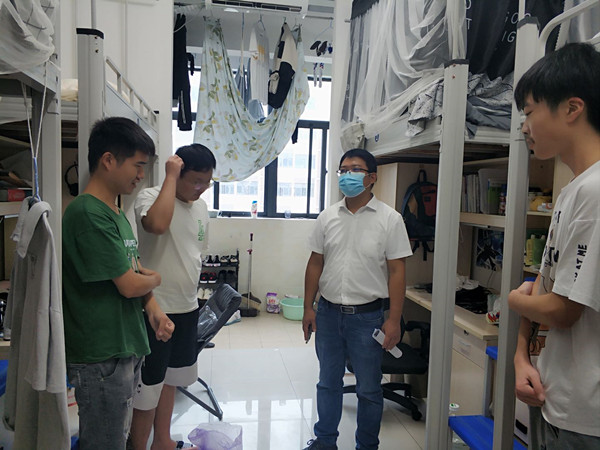 走访中,学院领导与返校学生进行了亲切交流,了解学生暑假学习生活情况,提醒学生要给父母报平安,返校后切实做好疫情防控常态化工作,进一步提高安全防范意识;注意用电安全、交通安全、个人财产安全等安全事项;鼓励学生们新学期要珍惜青春时光,合理规划大学生活,提高自律与独立生活的能力,互助友爱,勤奋学习,学好专业课,为考研提前做准备,同时提醒学生们要注意身体健康,加强锻炼,努力改善宿舍卫生。