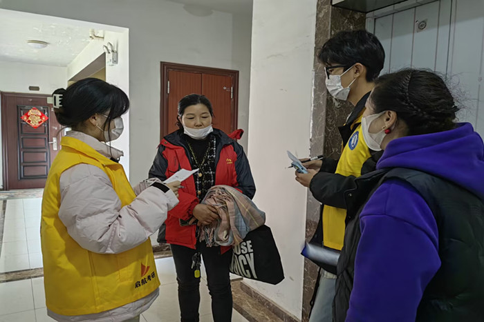 活动中,支部团员在派出所民警和社区工作人员的带领下,通过上门走访的形式向社区居民宣传防范电信诈骗的相关知识,以“冒充领导诈骗”、“贷款诈骗”、“网络兼职刷单”等系列电信诈骗案例对居民进行一一讲解,提醒居民在日常生活中要提高自我安全防范意识,不要轻信所有涉及银行卡相关信息的电话、短信和链接,帮助居民下载国家反诈中心APP。同学们还跟随社区工作人员排查居民矛盾纠纷、了解民情民意、征求群众意见建议。