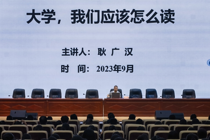 为帮助新生坚定理想信念,养成良好学风,培育担当精神,提升素质能力,9月10日晚,财经学院在东辅楼二楼报告厅开展“大学,我们应该怎么读”主题辅导报告。学院党委副书记耿广汉主讲,全体2023级新生参加。