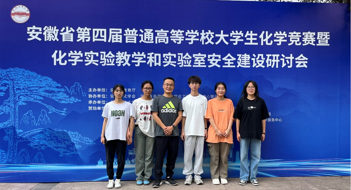本次大赛由安徽省教育厅主办,决赛有包括中国科学技术大学、合肥工业大学、安徽大学等全省共27所高校134名同学参赛。 决赛阶段采取理论考试与实验操作技能测试相结合的方式,充分展现了大赛着力培养“双创”型人才的高校育人导向,彰显了大学生提升科技创新能力和实践动手能力的重要性。最终,我校学生张妮妮和陈超群荣获一等奖、胡钰荣获二等奖、崔诗语和杨姝莹同学荣获三等奖。张妮妮表现突出,还被推荐参加8月中旬在山东大学举办的全国大学生化学实验竞赛决赛。