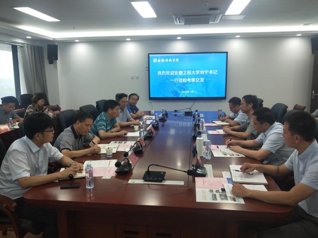 7月21日下午,安徽工程大学党委书记刘宁,党委常委、副校长郭兴众率办公室、国际工程师学院管委会等负责同志,来我校考察交流两校区办学与运行管理工作。我校党委副书记、校长李震,党委委员、副校长黄远友,在龙湖校区与刘宁一行座谈交流。党委(校长)办公室主任曾献功,龙湖校区综合管理办公室、保卫处、基建管理处等部门负责同志参加交流。