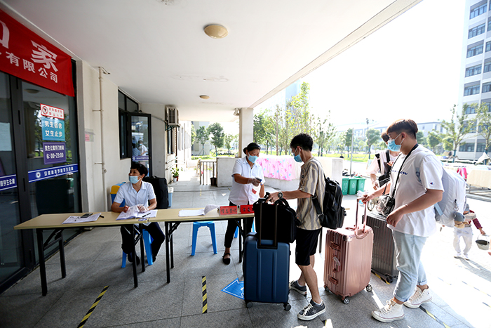 8月29日起,我校龙湖校区、凤阳校区将迎来秋季学期12067名学生返校。29日上午,笔者在两校区学生返校现场看到,返校第一天学校秩序井然,在返校专用通道,测量体温、更换口罩、手部消毒、查验安康码等环节井然有序地进行。“丹桂飘香 热烈欢迎广大同学平安返校”,校园内主干道横幅悬挂,氛围热烈,安静了几个月的校园瞬间热闹起来,蓬勃朝气伴随着同学们的平安归来瞬间充满了整个校园。