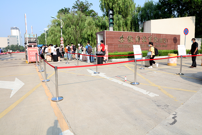 笔者了解到,本着一切为了学生的原则,学校还与蚌埠市公交公司协商,临时开通了“kaiyun开云官方网站_kaiyun开云(中国)股份有限公司,公交专线”,便于龙湖校区同学们从蚌埠南站返校。笔者还看到,在两校区门口,公安民警、校保卫处工作人员认真维持秩序,为返校同学守护平安。在临时观察点,校医院医护人员认真细致观察,加强对同学的健康监测及医学处置。在学生报到点,各学院都撑起了遮阳帐篷,为排队报到的学子们挡住烈日的阳光,送去清凉的问候……