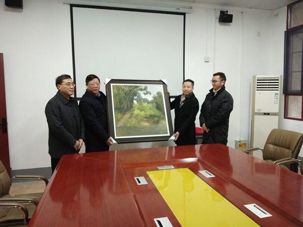 仪式上,汪肇安向母校捐赠布面油画《塅子人家》和现金伍万元整。油画由著名画家刘曦创作,具有较高的收藏价值。整个画面洋溢着浓郁的乡村气息,从绿树掩映着的农家小屋延伸出一条蜿蜒的小道,寓意着农家学子从农村到城市一路走来的道路虽然艰难,但坚持走下去就有希望,就一定能迎来光明的未来。(特约通讯员:胡文靖 摄影:胡文靖 审核:姚勇 卫胜 编辑:汤帅)