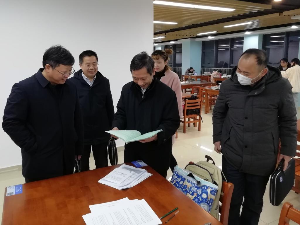12月14日下午,党委副书记、校长李震,党委委员、副校长李升和到龙湖校区图书馆调研指导工作,马克思主义学院直属党支部书记杨仕勇、图书馆副馆长汪徐春等陪同调研。