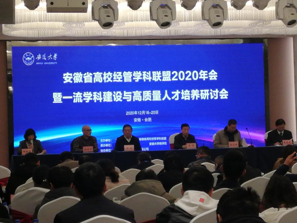 12月19日,由安徽省高校经管学科联盟和安徽大学主办、安徽大学经济学院和安徽大学工商管理学院承办的安徽省高校经管学科联盟2020年会暨一流学科建设与高质量人才培养研讨会在安徽合肥召开。共有来自全省30多所高校的100多名专家学者参加。