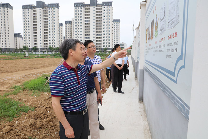 蒋德勤一行饶有兴趣地参观了刚刚建成开放的农耕文化墙,听取了何世潮、舒英杰等关于农耕文化墙建设的酝酿和实施情况,提出了文化墙完善的意见和建议,肯定了文化墙建设的文化意义。