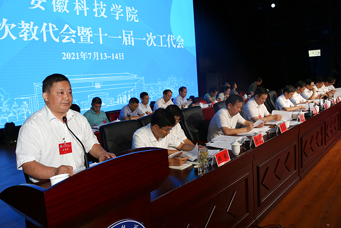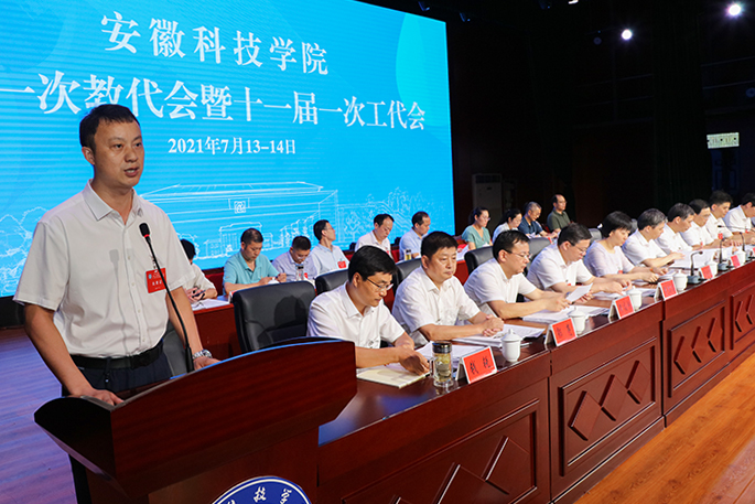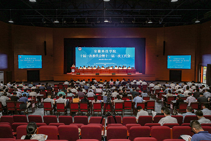 7月13日上午,我校十届一次教代会暨十一届一次工代会在大学生活动中心开幕。校党委书记蒋德勤,党委副书记、校长李震,党委副书记韦文联,党委委员、副校长黄远友,党委委员、纪委书记、监察专员王强,党委委员、副校长黄友锐,党委委员、副校长李升和,督导员郭亮及主席团其他成员出席开幕式并在主席台就坐,安徽省教科文卫体工会三级调研员李晓燕莅会指导并致辞。韦文联主持开幕式并宣布十届一次教代会暨十一届一次工代会开幕。