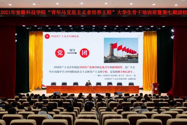 10月27日下午,蚌埠团市委书记韩见应邀在龙湖校区为我校2021年“青马工程”大学生骨干培训班暨第七期团校做专题报告,报告由校团委书记、党委宣传(统战)部副部长黄立义主持。
