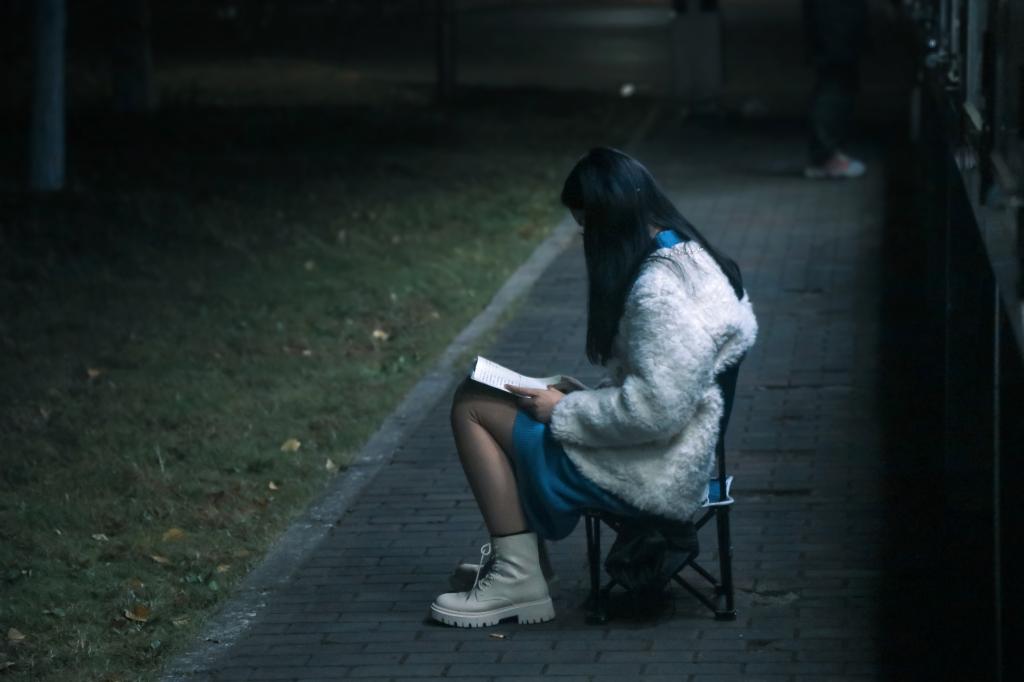 路灯下,是一个个沉默而坚定的背影,灯光的照耀下,印衬着他们考研的希望,风雨不惧,只为星月兼程,换取成功上岸的那一天。