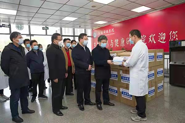 4月4日下午两时许,校党委书记蒋德勤,党委委员、副校长黄远友,来到生命与健康科学学院生物医药与健康研究院,看望慰问正在向省教育厅及相关高校派送捐赠抗原检测试剂盒的广大师生,现场查看了即将寄发的100箱抗原检测试剂盒,询问了有关情况,并就捐赠工作提出了具体要求。