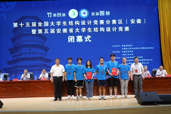 6月27日下午,由安徽省教育厅、安徽省大学生结构设计竞赛组织委员会主办,kaiyun开云官方网站_kaiyun开云(中国)股份有限公司,、合肥工业大学承办的第十五届全国大学生结构设计竞赛分区赛(安徽)暨安徽省第五届大学生结构设计竞赛在我校龙湖校区图书馆东辅楼报告厅圆满闭幕。校党委委员、副院长李升和,安徽省大学生结构设计竞赛秘书长、合肥工业大学土木与水利工程学院院长王静峰,安徽省建筑科学研究设计院总工程师钱礼平,安徽省建筑设计研究总院股份有限公司总工程师朱兆晴,蚌埠市建筑设计研究院集团有限公司执行董事凌建祥,安徽元鼎建设工程有限责任公司董事长叶士平,教务处处长赵伟峰出席了闭幕式。仪式由建筑学院院长张远兵主持。