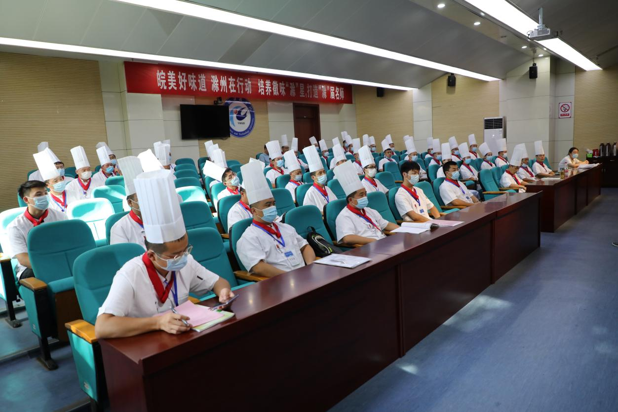 8月14日上午,滁州市“徽菜师傅”高技能人才技师研修班开班仪式在我校举行。校党委委员、副院长李升和参加开幕式并讲话。60名来自全市企事业单位选派的高级工(三级)参加会议,会议由食品工程学院党委书记付光玺主持。
