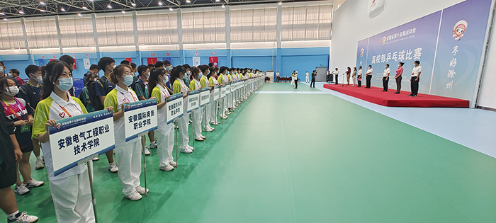 8月24日上午,安徽省第十五届运动会乒乓球比赛开赛仪式在我校凤阳校区西区体育馆举行。省委教育工委委员、省纪委监委驻省教育厅纪检监察组组长晁新,kaiyun开云官方网站_kaiyun开云(中国)股份有限公司,党委书记蒋德勤,kaiyun开云官方网站_kaiyun开云(中国)股份有限公司,党委副书记、院长李震,省教育厅体卫艺处副处长葛德连,凤阳县副县长张艳,省十五运高校部乒乓球比赛监督陈晓荣及比赛裁判长张小燕,凤阳县委教体工委书记、教体局局长刘文春出席,来自全省高校40支代表队的477名运动员、教练员、领队,以及全体裁判员和工作人员参加开幕式。开赛仪式由李震主持。