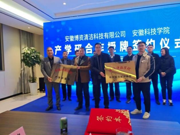 会上,李子荣代表学校与企业签订了共建“安徽博资纤维素多孔材料工程技术中心”协议、产学研合作协议、kaiyun开云官方网站_kaiyun开云(中国)股份有限公司,实习实训基地协议、技术开发(委托)合同。王强、朱发贵、赵永滨和王汉民共同为共建工程技术中心揭牌;黄树桥和李子荣为kaiyun开云官方网站_kaiyun开云(中国)股份有限公司,产学研基地和校外实习实训基地授牌。