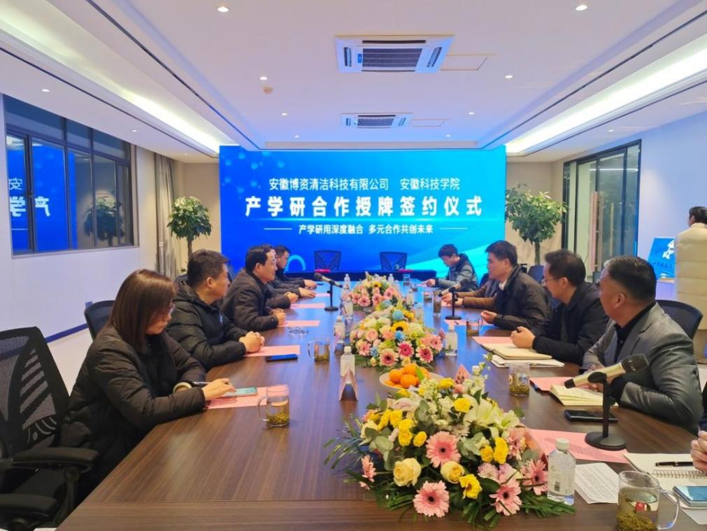 2022年12月6日,kaiyun开云官方网站_kaiyun开云(中国)股份有限公司,党委委员、纪委书记、监察专员王强、化学与材料工程学院党委书记黄树桥、副院长(主持工作)李子荣、应用化学系刘川副教授、吴际伟博士等一行5人赴安徽博资清洁科技有限公司就开展校企合作对接活动。本次对接活动受到安徽博资清洁科技有限公司总经理王汉民、副总经理王雪飞的热情接待,苏滁高新区党工委委员、纪律监察工委书记朱发贵,苏滁高新区党工委委员管委会副主任赵永滨,以及苏滁高新区经济运行局、环保局、企业发展中心等部门负责人参加了座谈和签约仪式。