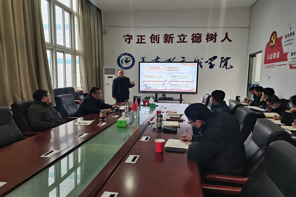 在全校上下深入学习宣传贯彻党的二十大精神之际,12月7日下午,马克思主义学院党总支召开理论学习中心组(扩大)学习会议,校党委委员、副院长黄远友,党委(校长)办公室主任曾献功列席并指导中心组学习。马克思主义学院党总支副书记、院长张德化主持,全体党员教师参加学习。