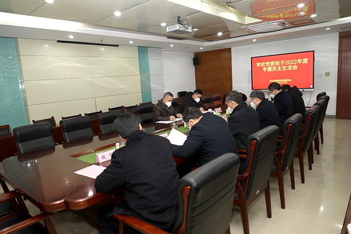 1月13日上午,学校党委班子2022年度专题民主生活会在凤阳校区新图书馆九楼会议室召开。党委书记蒋德勤,党委副书记、院长李震,党委委员、副院长黄远友,党委委员、副院长李升和,党委委员、机关党委书记卫胜,党委委员、党委组织部部长钱锐参加会议。机关有关部门负责人、党员群众代表等列席会议。上级督导组省委教育工委组织干部处副处长、三级调研员王树龙,省教育厅发展规划处四级主任科员李鑫到会指导。会议由蒋德勤主持。