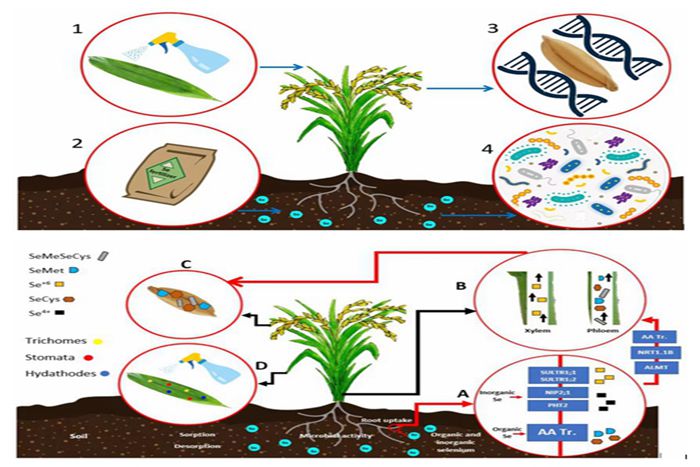硒是人类和动物必需的微量元素,有研究表明全球有近10亿人不同程度缺硒。为解决“隐性饥饿”问题,赵其国院士引入功能农业概念,提出农产品的营养化、功能化,来满足“吃出健康”的新需求。面向这一农业发展新方向,全球越来越多学者开展了相关研究。这篇综述旨在提供全球硒生物强化方法的研究现状,讨论硒生物营养强化相关发展策略、进展以及挑战。已有的硒生物营养强化四大策略为:叶面喷施硒肥、土壤施硒肥、微生物辅助营养强化以及基因营养强化。目前,研究人员不仅利用各种技术提高作物和牲畜可食用部分的硒含量,以解决硒摄入量偏低的问题,也从硒资源保护的角度出发,对农产品的生物营养强化效应进行了深入研究。与此同时,该方向也还存在诸多挑战,一方面是“正向研究”,即:围绕“土壤-作物-动物-食物-人体”链条中功能物质的传输规律尚不完全清楚,硒生物营养强化过程中硒生物有效性、传输效率、形态转变和健康效应机制等问题研究仍不够系统。另一方面是在研发“逆向调控技术”,即:围绕满足人的健康的“个性化、标准化和特殊化”的食用需求,需要对硒元素进行逆向精准调控,这一过程需要更多先进的工程技术手段来实现。(特约通讯员:刘晓丹 审核:陈丰 编辑:刘倩)