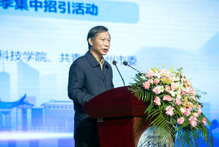 李震在致辞中介绍了学校的办学成果与发展成就,对滁州市委市政府长期以来给予学校事业发展的大力支持表示感谢。他指出, 2021年学校获批硕士学位授予单位,开始进入安徽省一本批次和提前批次招生,当前正按照学校第三次党代会确立的“三步走”发展战略,朝着“十四五”时期更名大学,2035年建成“现代化全国一流应用型大学”的奋斗目标砥砺前行。他强调,学校与滁州的校地合作机制不断完善,双方交流日益频繁,校地政产学研用合作深入推进,滁州校区正在稳步推进,滁州市支持的食品与营养和机械工程2个学科进入安徽省高峰培育学科建设名单,学科建设获得新突破。近三年学校各单位与滁州市多家企业签订了合作协议,联合开展技术攻关和生产工艺革新,取得了一系列合作成果。李震希望,安科毕业生能够充分利用滁州发展时机,借势发展,在滁州干事创业,寻求高位发展。