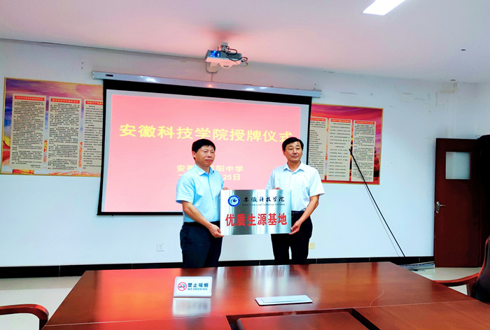 时伟向陈勋刚授予“优质生源基地”铭牌,招生与就业工作处在凤阳中学报告厅举办了高考志愿填报公益讲座,凤阳中学一千余名师生参加。(特约通讯员:司萍 摄影:常悉尼 审核:何晓冬 姚文均 编辑:张威)