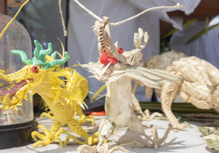 活动期间“留青竹刻”、“葫芦工艺雕刻”、“面塑”、 “剪纸”等非遗传承人为实践团成员讲解、展示工艺作品。实践团成员深入了解了“虎头鞋”非遗手工童鞋、市级非物质文化遗产项目“草编”作品的工艺细节及技术。(作者:沈德艳 摄影:屈阳)