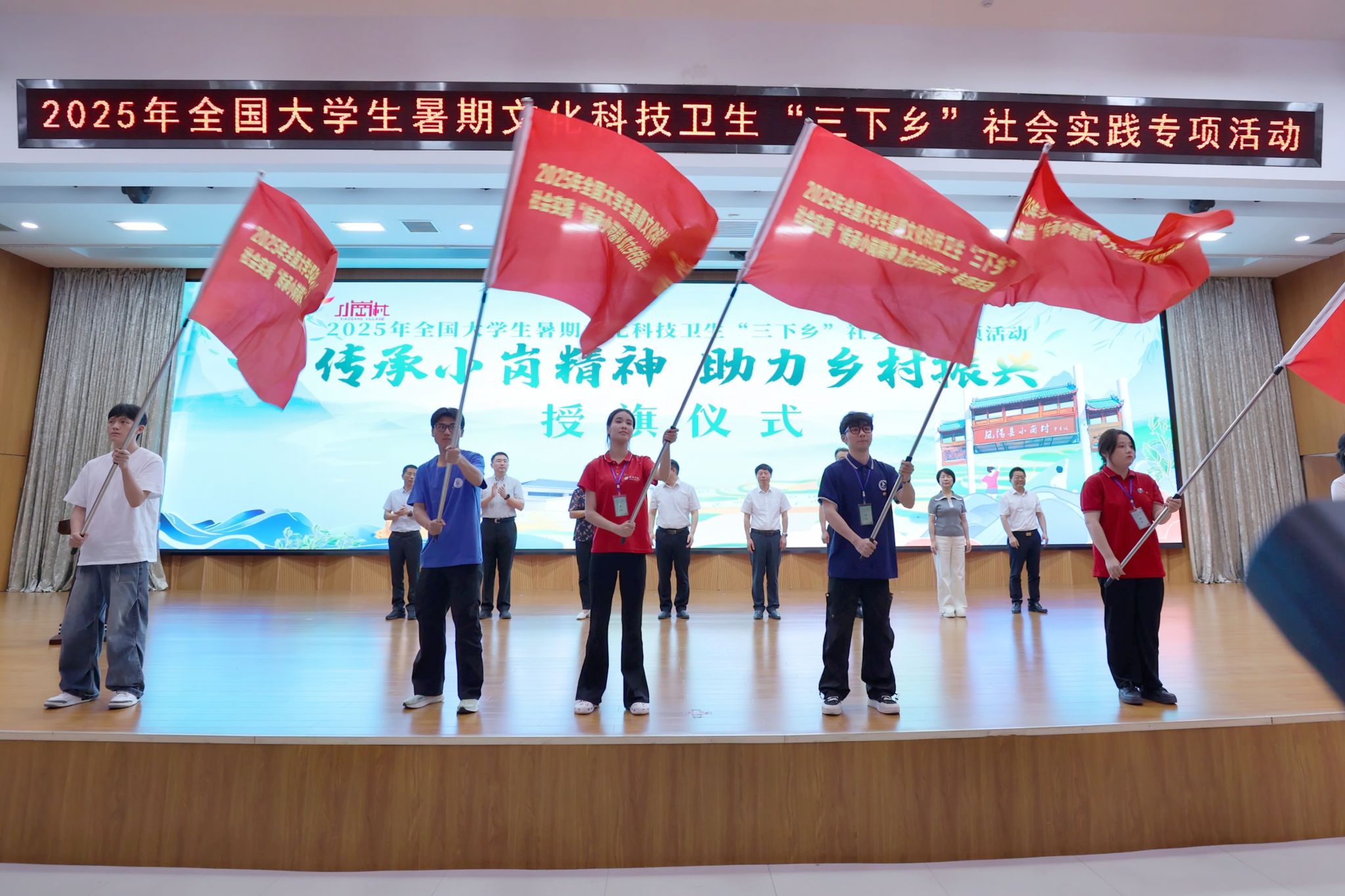 仪式上,陈明生、时伟、金力、孙小龙等共同为实践团队代表授旗,并启动专项活动。