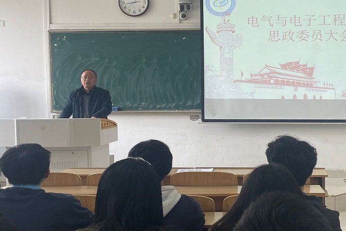 为进一步加强学生思想政治教育工作,探索学生自我管理、自我教育的有效形式。4月3日下午,电气与电子工程学院于致知楼C108召开思政委员大会。学院党委副书记、纪委书记尚磊,学生会指导老师于宏亮及全体思政委员参加本次会议,会议由于宏亮主持。