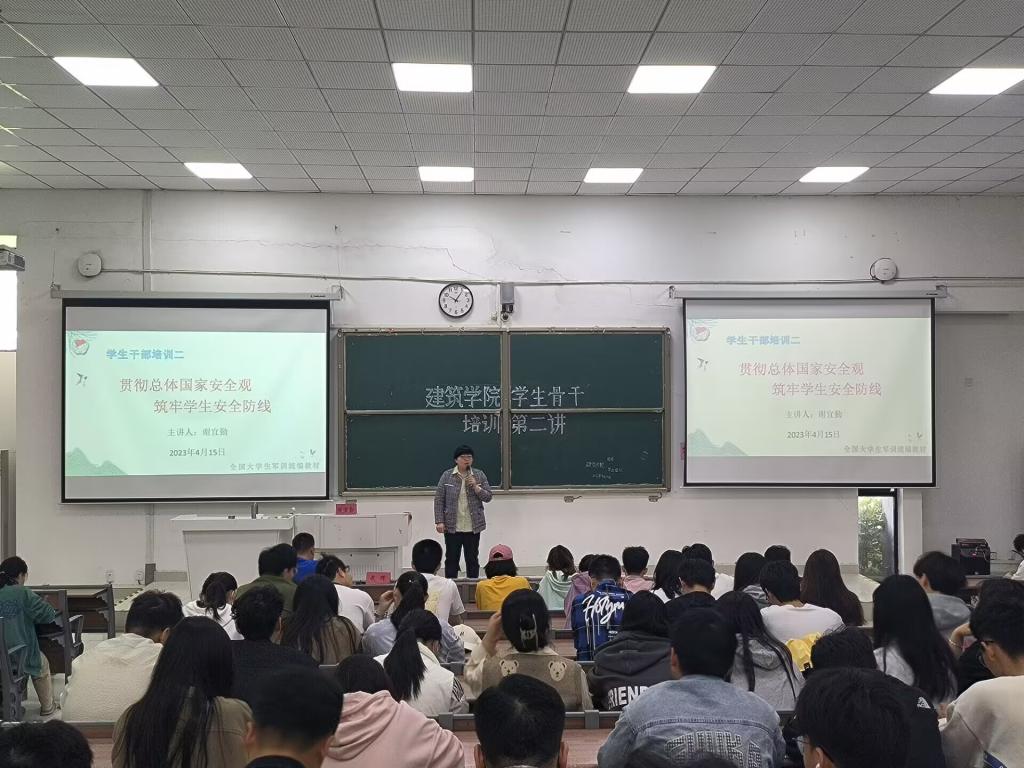 在第八个全民国家安全教育日之际,4月15日下午建筑学院在致知楼C111举办了以“贯彻总体国家安全观,筑牢学生安全防线”为主题的专题讲座。讲座由学院党委副书记、纪委书记谢宜勤主讲,非毕业班学生干部以及学生组织全体成员参加本次讲座。讲座由专职辅导员武辉主持。
