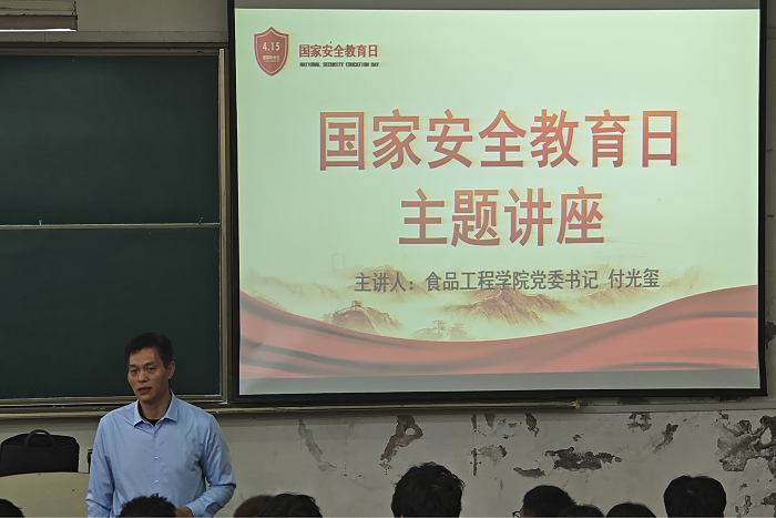 国家安全无处不在,事关国家核心利益。食品工程学院党委积极担负起主体责任,深入开展法治工作,严格遵守保密制度,引导广大师生深入践行总体国家安全观,营造了人人知晓、人人关注、人人重视国家安全的良好氛围。本次讲座的成功举办,进一步引导了广大师生认清国家安全形势、增强国家安全意识、履行国家安全使命,提高了师生共同维护国家安全的责任感、使命感,构筑起防反渗透的良好教育环境。(特约通讯员:程韬 摄影:方天 审核:王广良 编辑:张威)