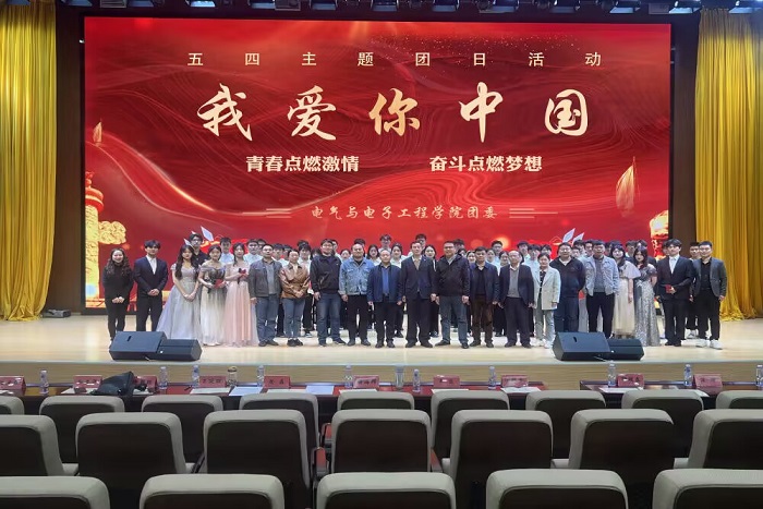 4月23日下午,电气与电子工程学院于龙湖校区东辅楼报告厅举办“我爱你,中国”——“青春点燃激情,奋斗点燃梦想”五四主题团日活动。学院党委书记骆海邦,党委副书记、院长夏显明,党委副书记、纪委书记尚磊,校团委副书记王乐,学院各系主任、实验室主任及全体辅导员出席活动,2022级全体同学参加活动。