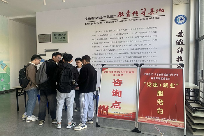就业是事关学生的实事、要事,也是学校需攻坚克难的难事,需用心用情做好的暖心事。活动中,两支部充分发挥党支部“桥梁纽带”作用,协同在西区体育馆农科类大型专场就业双选会上设立服务点,为求职大学生提供“点对点、一站式”服务保障。由支部党员组成服务队,佩戴党员徽章、挂牌现场为学生提供征兵咨询、国家资助、就业政策等相关咨询和引导服务,累计吸引100余人次前来问询。