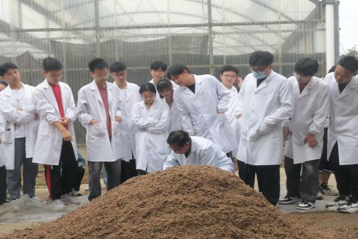 何华奇首先为同学们讲解种植蘑菇的相关知识,并教授学生培养基装袋、灭菌技巧。同学们热情满满、配合默契,经过大家不懈的努力,堆积如山的肥料终于全部装袋成功了。劳动实践中,何华奇还带领同学们采摘蘑菇,观察蘑菇的生长环境,更加深入了解了蘑菇生长习性。他还就同学们关心的蘑菇种植问题进行了解答交流。