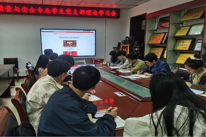 为深入学习贯彻习近平新时代中国特色社会主义思想,进一步提升支部党员理论素养,5月11日上午,食品质量与安全专业学生党支部在学院会议室召开理论学习会,推动优化学习方式和注重学习实效相结合,推动党的创新理论入脑入心、见行见效。支部全体党员参会,会议由党支部书记王广良主持。