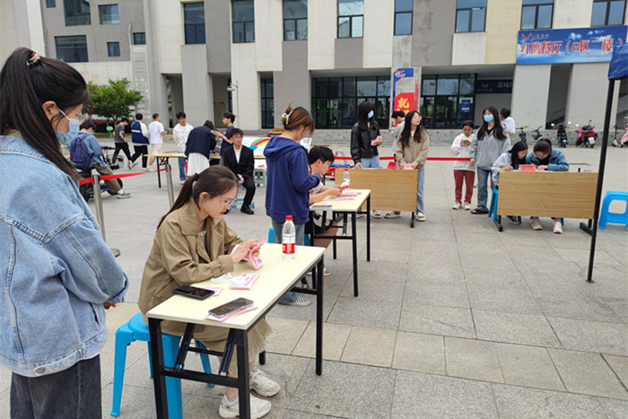为进一步丰富大学生心理健康教育活动形式,增加心理教育的趣味性、生动性和有效性,提高大学生的心理健康素质,5月24日下午,财经学院在龙湖校区知味园前小广场举办心理游园会。游园会由财经学院心理委员联合会承办。学院团委书记、心理辅导老师薛枫全程指导。