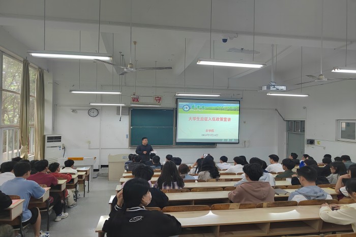 杨孝延介绍了大学生入伍优待政策,重点讲解了大学生当兵基本条件、优待政策、退役安置等政策,为同学们算好“政治账”“经济账”和“前途账”,鼓励大学生积极响应国家号召,踊跃接受祖国的挑选,到部队的大熔炉中磨砺意志、锻炼品质,到部队的大学校里增长才干、成就人生,到部队的大舞台上尽展才华、建功立业,让人生在实现军人梦中绽放绚丽的光彩。