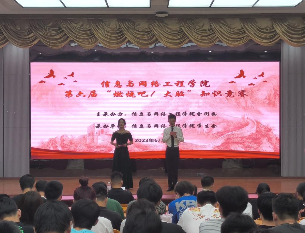 为丰富广大学生课余文化生活,增强学生网络安全意识,营造网络安全、人人有责的良好氛围,6月11日,信息网络工程学院在敏行楼102报告厅举办了第六届“燃烧吧!大脑”知识竞赛决赛活动。信息与网络工程学院学生会指导老师出席本次活动,学院有关辅导员受邀出席,22级全体学生干部观看本次活动。