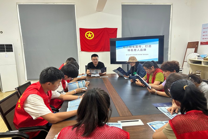 活动过程中,团委副书记于宏亮和与会导生向社区工作者详细介绍了学院的“双导制”育人机制。他指出,大学生暑期社会实践是导生不断提升服务水平、自主学习能力和综合素质的重要途径。随后,导生向与会人员分发招生宣传册。于宏亮强调,当前是学校招生宣传工作的重要时期,此次实践在社区进行宣传目的在于让广大学生和家长熟悉学校、了解专业、准确掌握志愿填报信息等方面精准提供支持和帮助。最后,社区工作人员表示,希望今后大学生积极参与社区活动,持续加深社区与学院之间的交流合作。