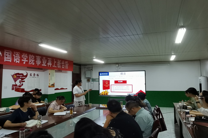 为深入开展学习贯彻习近平新时代中国特色社会主义思想主题教育,全面贯彻落实党的二十大精神,深入学习宣传习近平法治思想,切实用习近平法治思想引领《中华人民共和国民法典》学习宣传工作,充分认识《中华人民共和国民法典》颁布实施的重大意义,增强广大师生的法治意识,7月6日上午,外国语学院邀请人文学院张晓云博士为学院全体教职工作《中华人民共和国民法典》学习的专题讲座。