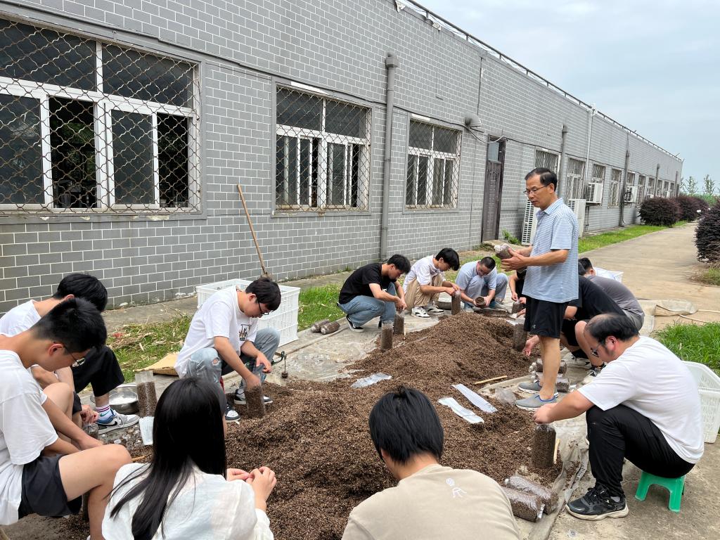 7月15日,农学院部分暑期留校学生在科技特派员何华奇老师的带领下拌料、装料、灭菌和接种,为科技特派员服务村制作食用菌菌袋,示范推广食用菌栽培技术,为乡村振兴贡献力量。