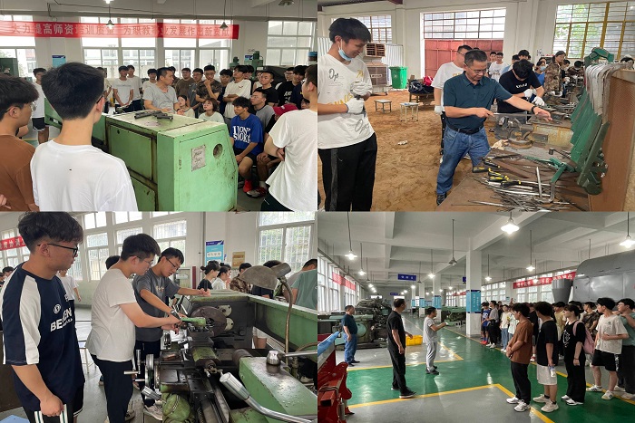 实习过程中,重点围绕车工、钳工、焊接三项内容进行。由于天气炎热,对指导教师与学生共同完成此项教学任务带来很大困难和挑战,学院党政领导一直关注并重视师生安全问题,亲临实习现场看望学生,党委副书记、院长夏显明以丰富的教学经验和精准操控为现场参与实践的学生亲身示范,引发广大学生对此次实践课程的深度思考和重视。他表示,金工实习是专业人才培养过程中的重要环节,他希望学生能够珍惜本次实习机会,勤学善思、丰富阅历,展现出学院认真严谨、刻苦钻研的院风和学风。随后,实习学生在指导老师的引导下,开始学习并操作机器,历经六天,本次金工实习圆满结束。