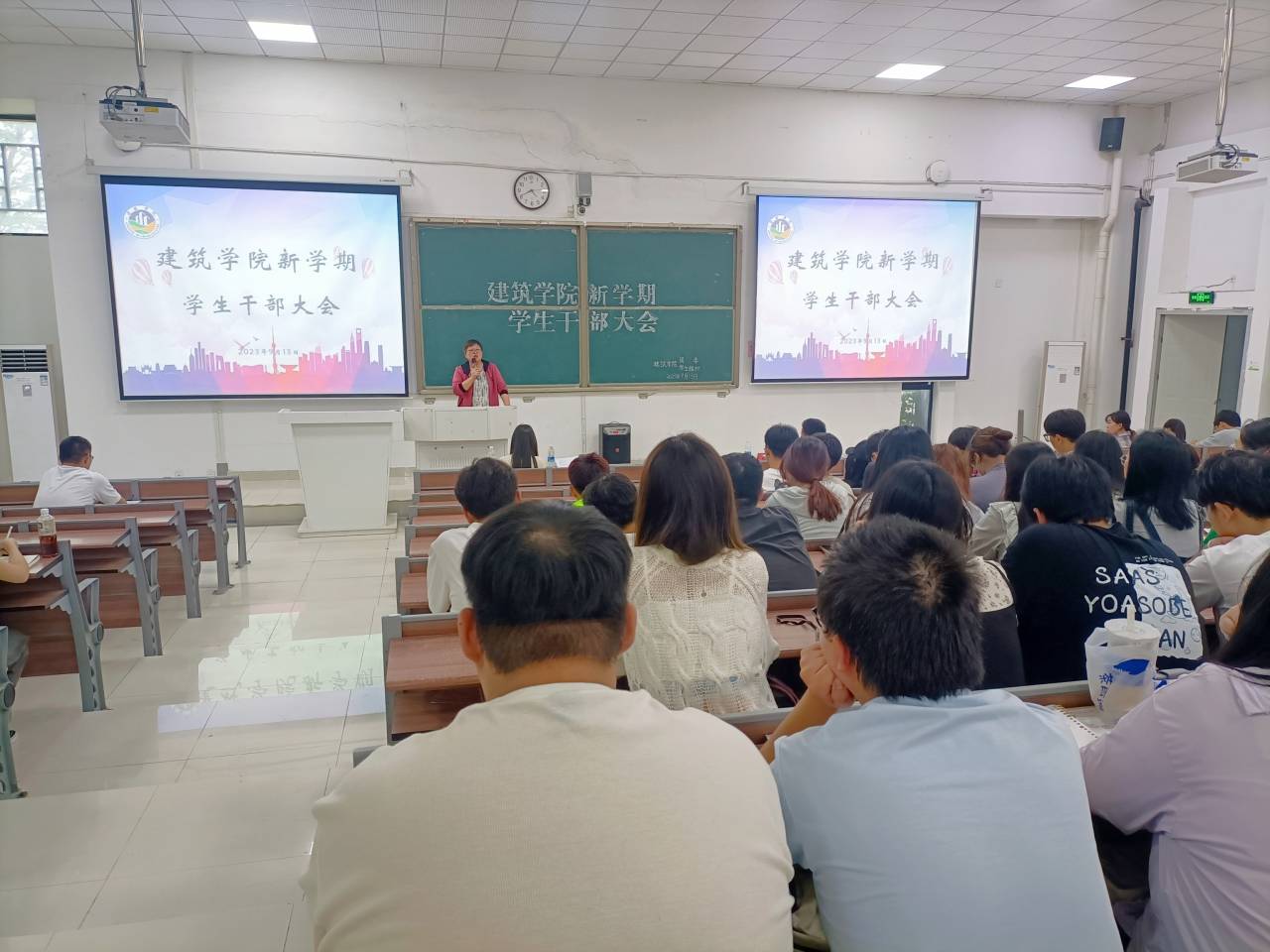 为进一步提高学生干部工作主动性,加强管理与服务水平。9月13日下午,建筑学院在致知楼C111教室召开新学期学生干部大会。学院党政领导、全体辅导员、各学生团体组织成员及各班级主要学生干部参加会议。会议由专职辅导员武辉主持。